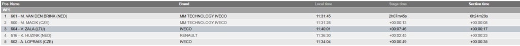 Atnaujinta 11:40 val.: WP6 Vaidotas Žala šioje atkarpoje vėl antras greičiausias sunkvežimis trasoje. WP7 irgi antras laikas. Puikiai įveikta dar viena atkarpa.