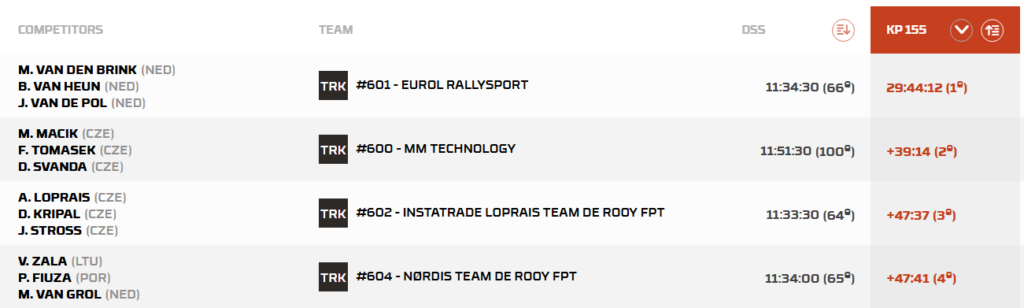 Įdomai ir tai, jog nuo 3-ioje bendrosios įskaitos vietoje esančio A. Loprais – Vaidotą skiria vos 4 sekundės. Sunkvežimių klasėje – reikalai labai rimti. Aišku, M. Van Den Brink pabėgo tolokai, o ir šiandien važiuoja didžiausiu tempu.